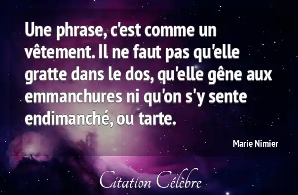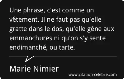 Une phrase, c'est comme un vêtement. Il ne faut pas qu'elle gratte dans le dos, qu'elle gêne aux emmanchures ni qu'on s'y sente endimanché, ou tarte.