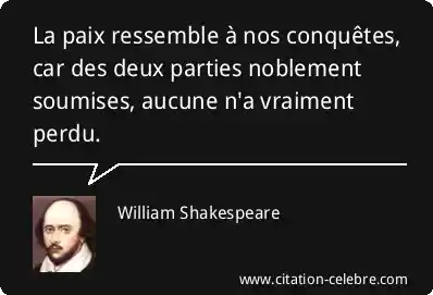 La paix ressemble à nos conquêtes, car des deux parties noblement soumises, aucune n'a vraiment perdu.