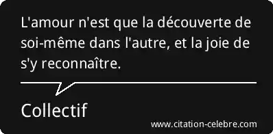 L'amour n'est que la découverte de soi-même dans l'autre, et la joie de s'y reconnaître.