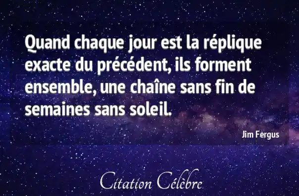 Quand chaque jour est la réplique exacte du précédent, ils forment ensemble, une chaîne sans fin de semaines sans soleil.