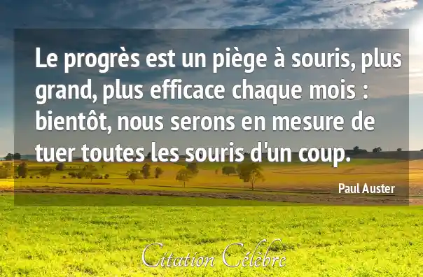 Le progrès est un piège à souris, plus grand, plus efficace chaque mois : bientôt, nous serons en mesure de tuer toutes les souris d'un coup.