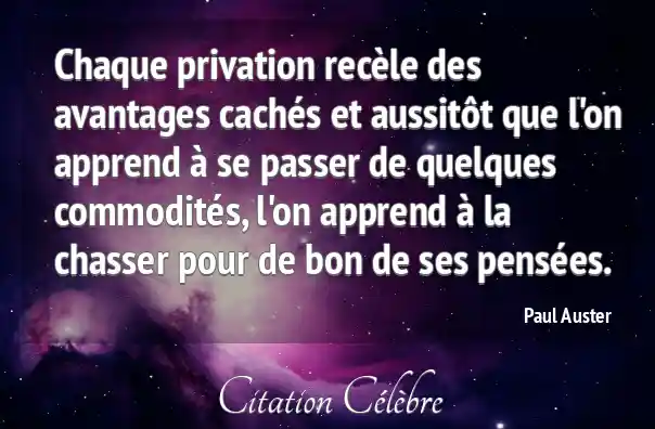 Chaque privation recèle des avantages cachés et aussitôt que l'on apprend à se passer de quelques commodités, l'on apprend à la chasser pour de bon de ses pensées.