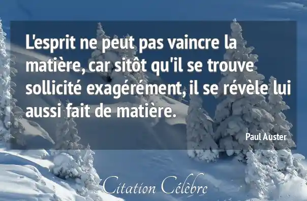 L'esprit ne peut pas vaincre la matière, car sitôt qu'il se trouve sollicité exagérément, il se révèle lui aussi fait de matière.