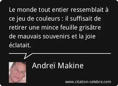 Le monde tout entier ressemblait à ce jeu de couleurs : il suffisait de retirer une mince feuille grisâtre de mauvais souvenirs et la joie éclatait.