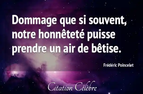 Dommage que si souvent, notre honnêteté puisse prendre un air de bêtise.
