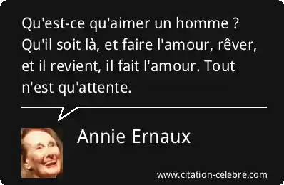 Qu'est-ce qu'aimer un homme ? Qu'il soit là, et faire l'amour, rêver, et il revient, il fait l'amour. Tout n'est qu'attente.