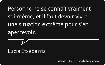 Personne ne se connaît vraiment soi-même, et il faut devoir vivre une situation extrême pour s'en apercevoir.