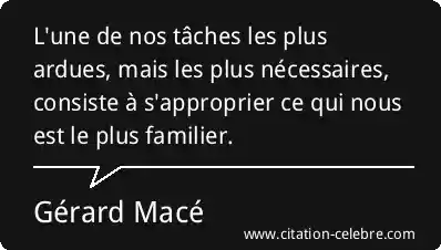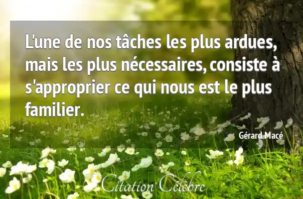 L'une de nos tâches les plus ardues, mais les plus nécessaires, consiste à s'approprier ce qui nous est le plus familier.