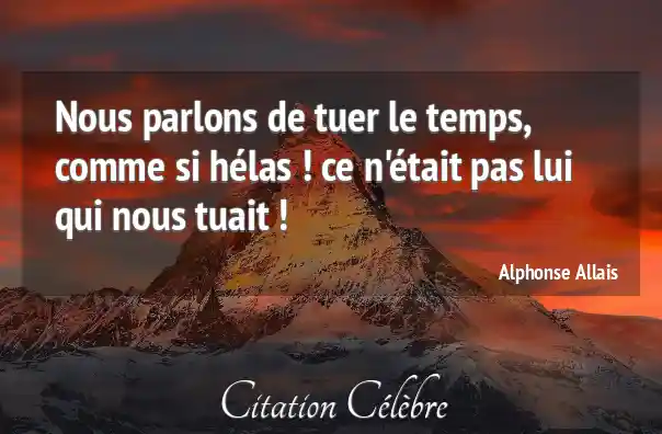 Nous parlons de tuer le temps, comme si hélas ! ce n'était pas lui qui nous tuait !