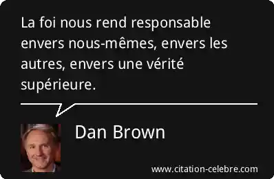 Citation Dan Brown verite : La foi nous rend responsable envers nous-mêmes, envers les autres,...