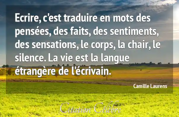 Ecrire, c'est traduire en mots des pensées, des faits, des sentiments, des sensations, le corps, la chair, le silence. La vie est la langue étrangère de l'écrivain.