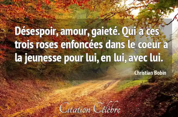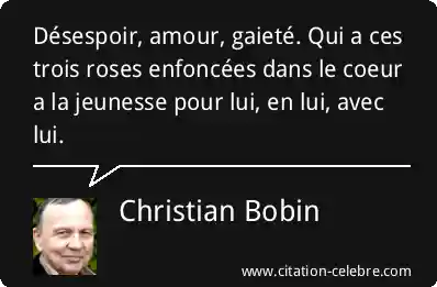 Désespoir, amour, gaieté. Qui a ces trois roses enfoncées dans le coeur a la jeunesse pour lui, en lui, avec lui.