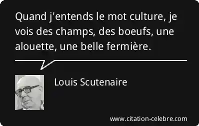Quand j'entends le mot culture, je vois des champs, des boeufs, une alouette, une belle fermière.