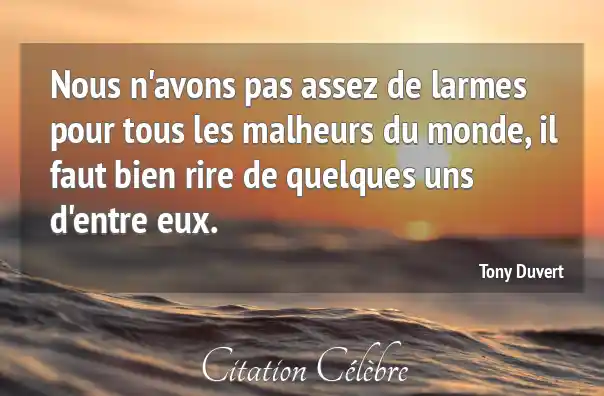 Nous n'avons pas assez de larmes pour tous les malheurs du monde, il faut bien rire de quelques uns d'entre eux.