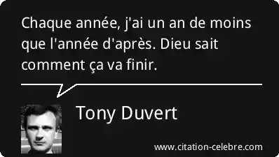 Chaque année, j'ai un an de moins que l'année d'après. Dieu sait comment ça va finir.
