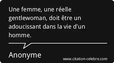 Une femme, une réelle gentlewoman, doit être un adoucissant dans la vie d'un homme.