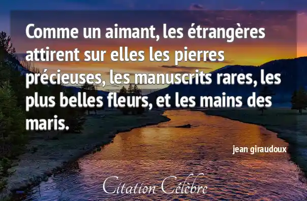 Comme un aimant, les étrangères attirent sur elles les pierres précieuses, les manuscrits rares, les plus belles fleurs, et les mains des maris.