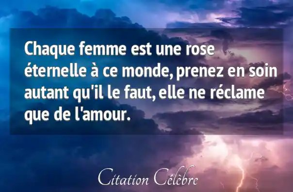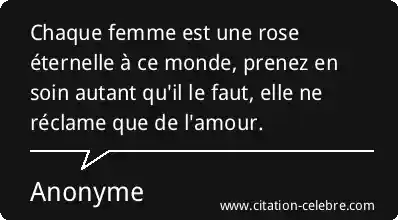 Chaque femme est une rose éternelle à ce monde, prenez en soin autant qu'il le faut, elle ne réclame que de l'amour.