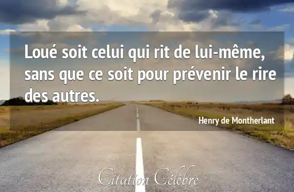 Loué soit celui qui rit de lui-même, sans que ce soit pour prévenir le rire des autres.
