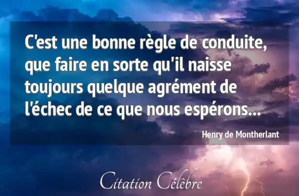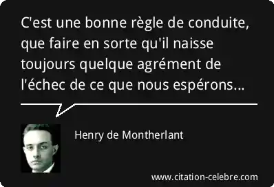 C'est une bonne règle de conduite, que faire en sorte qu'il naisse toujours quelque agrément de l'échec de ce que nous espérons...