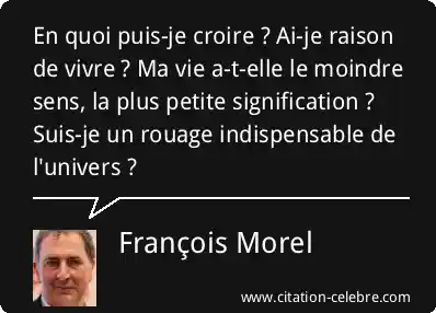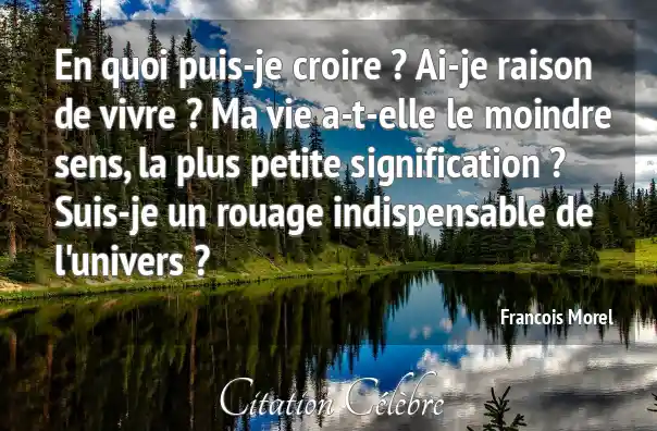 En quoi puis-je croire ? Ai-je raison de vivre ? Ma vie a-t-elle le moindre sens, la plus petite signification ? Suis-je un rouage indispensable de l'univers ?