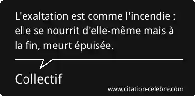 L'exaltation est comme l'incendie : elle se nourrit d'elle-même mais à la fin, meurt épuisée.