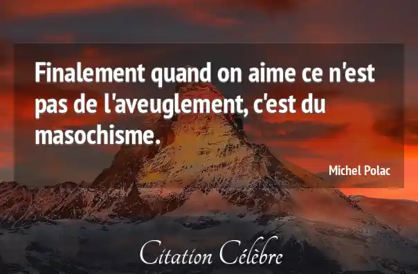 Finalement quand on aime ce n'est pas de l'aveuglement, c'est du masochisme.
