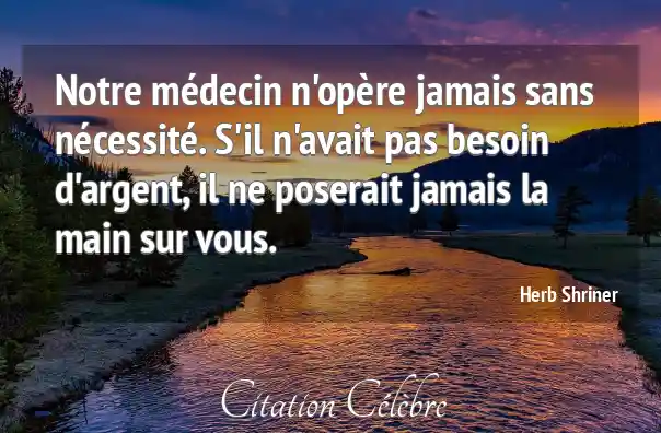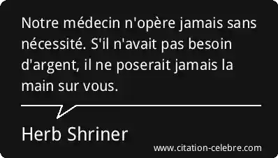 Citation Herb Shriner argent : Notre médecin n'opère jamais sans nécessité. S'il n'avait pas besoin...