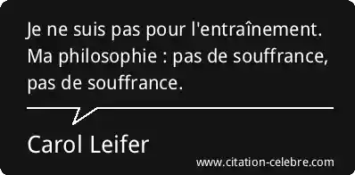 Je ne suis pas pour l'entraînement. Ma philosophie : pas de souffrance, pas de souffrance.