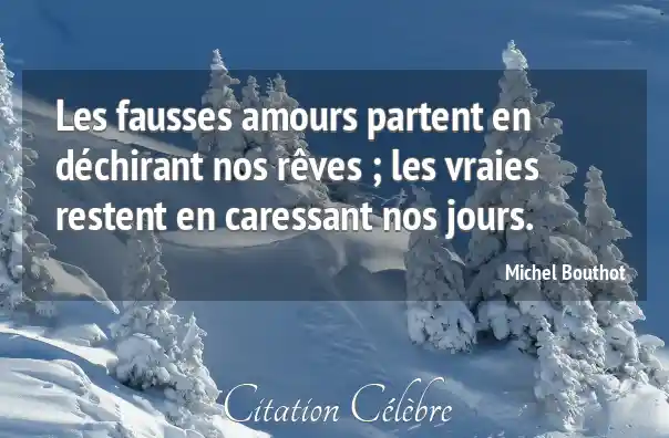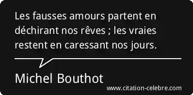 Les fausses amours partent en déchirant nos rêves ; les vraies restent en caressant nos jours.