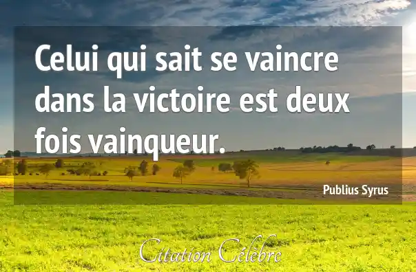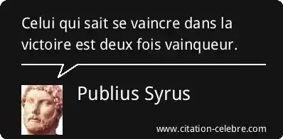 Celui qui sait se vaincre dans la victoire est deux fois vainqueur.