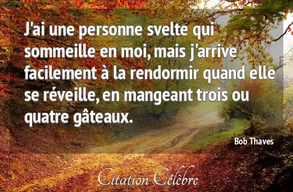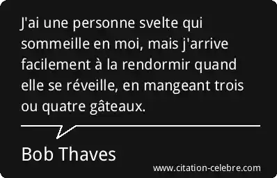 J'ai une personne svelte qui sommeille en moi, mais j'arrive facilement à la rendormir quand elle se réveille, en mangeant trois ou quatre gâteaux.