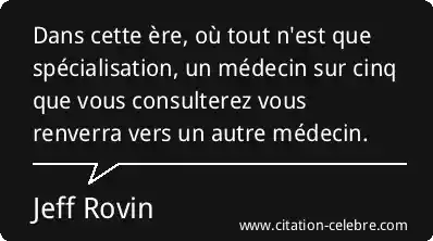 Dans cette ère, où tout n'est que spécialisation, un médecin sur cinq que vous consulterez vous renverra vers un autre médecin.