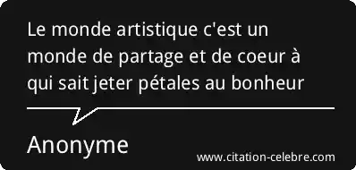 Le monde artistique c'est un monde de partage et de coeur à qui sait jeter pétales au bonheur
