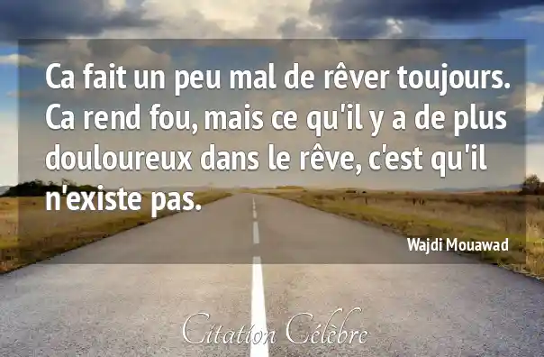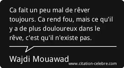 Ca fait un peu mal de rêver toujours. Ca rend fou, mais ce qu'il y a de plus douloureux dans le rêve, c'est qu'il n'existe pas.