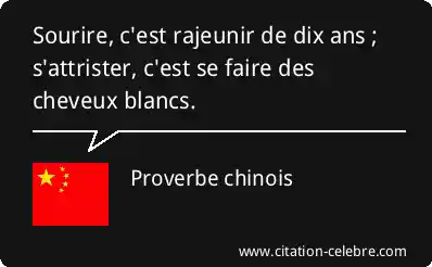 Sourire, c'est rajeunir de dix ans ; s'attrister, c'est se faire des cheveux blancs.