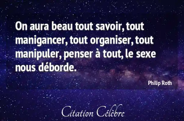On aura beau tout savoir, tout manigancer, tout organiser, tout manipuler, penser à tout, le sexe nous déborde.