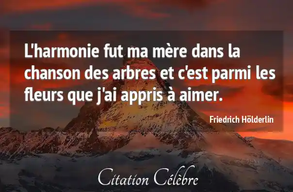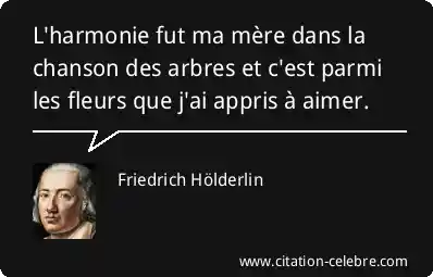 L'harmonie fut ma mère dans la chanson des arbres et c'est parmi les fleurs que j'ai appris à aimer.