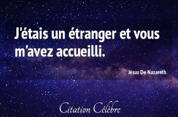 Citation Jésus de Nazareth etais : J'étais un étranger et vous m'avez accueilli....