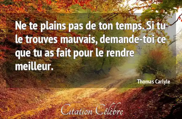 Ne te plains pas de ton temps. Si tu le trouves mauvais, demande-toi ce que tu as fait pour le rendre meilleur.