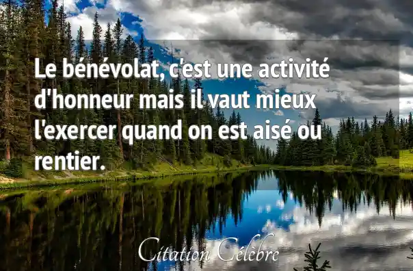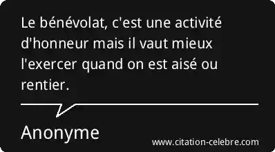 Le bénévolat, c'est une activité d'honneur mais il vaut mieux l'exercer quand on est aisé ou rentier.