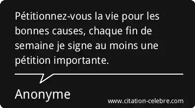 Pétitionnez-vous la vie pour les bonnes causes, chaque fin de semaine je signe au moins une pétition importante.