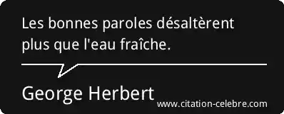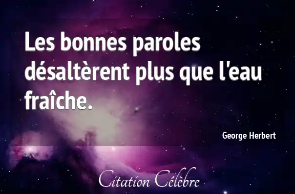 Les bonnes paroles désaltèrent plus que l'eau fraîche.