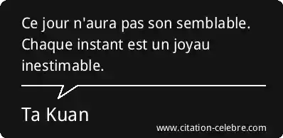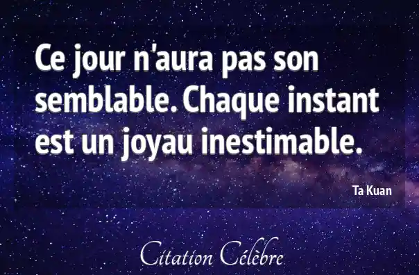 Ce jour n'aura pas son semblable. Chaque instant est un joyau inestimable.