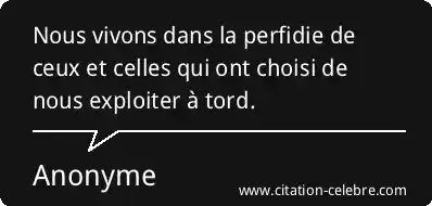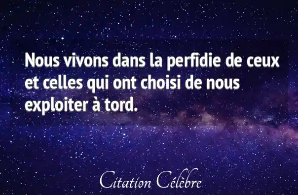 Nous vivons dans la perfidie de ceux et celles qui ont choisi de nous exploiter à tord.