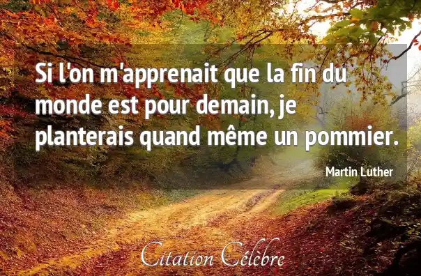 Si l'on m'apprenait que la fin du monde est pour demain, je planterais quand même un pommier.