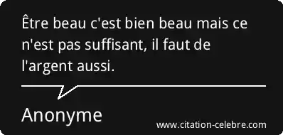 Être beau c'est bien beau mais ce n'est pas suffisant, il faut de l'argent aussi.