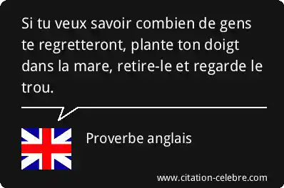 Si tu veux savoir combien de gens te regretteront, plante ton doigt dans la mare, retire-le et regarde le trou.