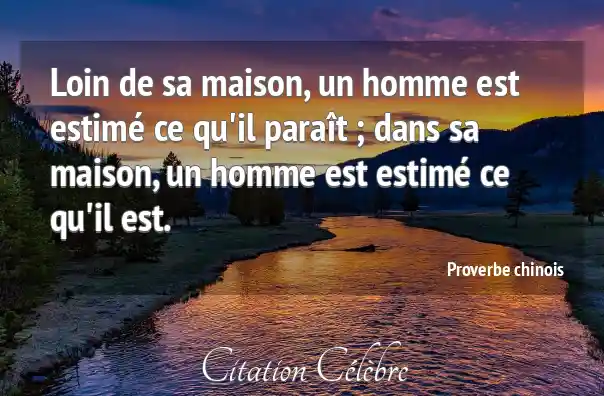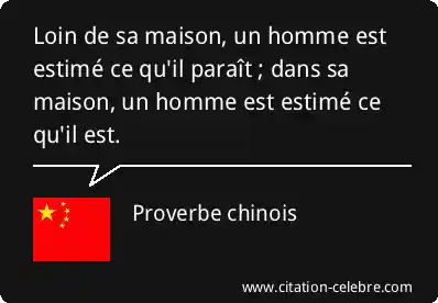 Loin de sa maison, un homme est estimé ce qu'il paraît ; dans sa maison, un homme est estimé ce qu'il est.
