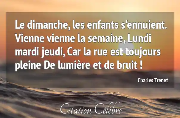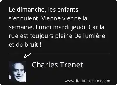 Le dimanche, les enfants s'ennuient. Vienne vienne la semaine, Lundi mardi jeudi, Car la rue est toujours pleine De lumière et de bruit !